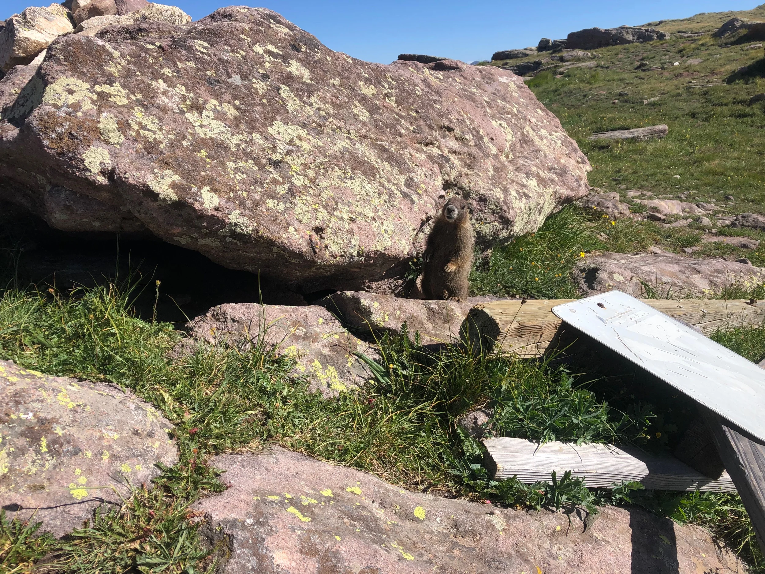 Day 2: I got on the trail this morning around 7:40. I got over Kokomo Pass and the flock of sheep that were on the mountain last night were now in the valley below. Last night I heard coyotes howling right upon the pass and I wondered if they got any of the sheep. I walked a little ways along the mountainside and stopped to watch some marmots run around on the rocks. After awhile I figured I sat around enough and needed to start making some miles. I ran into a lot of people mountain biking and hiking south. It seems like this area is really popular. I stopped to talk to the point that I felt I was never gonna make it to my campsite tonight. As I made my way along I realized why it was a popular stretch. Copper Mountain Ski Resort was at the base of the mountains. I passed right through the resort and around the outskirts of the golf course. A lot of golfers were out playing today. I don’t blame them it was a gorgeous day. I then crossed Highway 91 and began my climb up the mountainside. The elevation went from 9,821 feet by the highway to 12,490 feet at the top of the ridgeline. On one side you could see the Copper Mountain Ski Resort and on the other side the town of Breckenridge. As I was on the ridgeline the wind was blowing really hard and somewhere I lost my hawk feather I’d been carrying since Wolf Creek Pass. I backtracked about a quarter mile to see if I could find it, but the wind must’ve took it. I guess a little over 400 miles with it isn’t bad. I’ll have to look for another one. I made my way down into the valley and found a nice campsite around 7pm along a stream. I always try and camp by a water source if I can. I made some dinner and sat on a log as the sun finished setting behind the mountains. I have 6 miles till I reach the highway to Breckenridge and then I’ll hitch down to town.